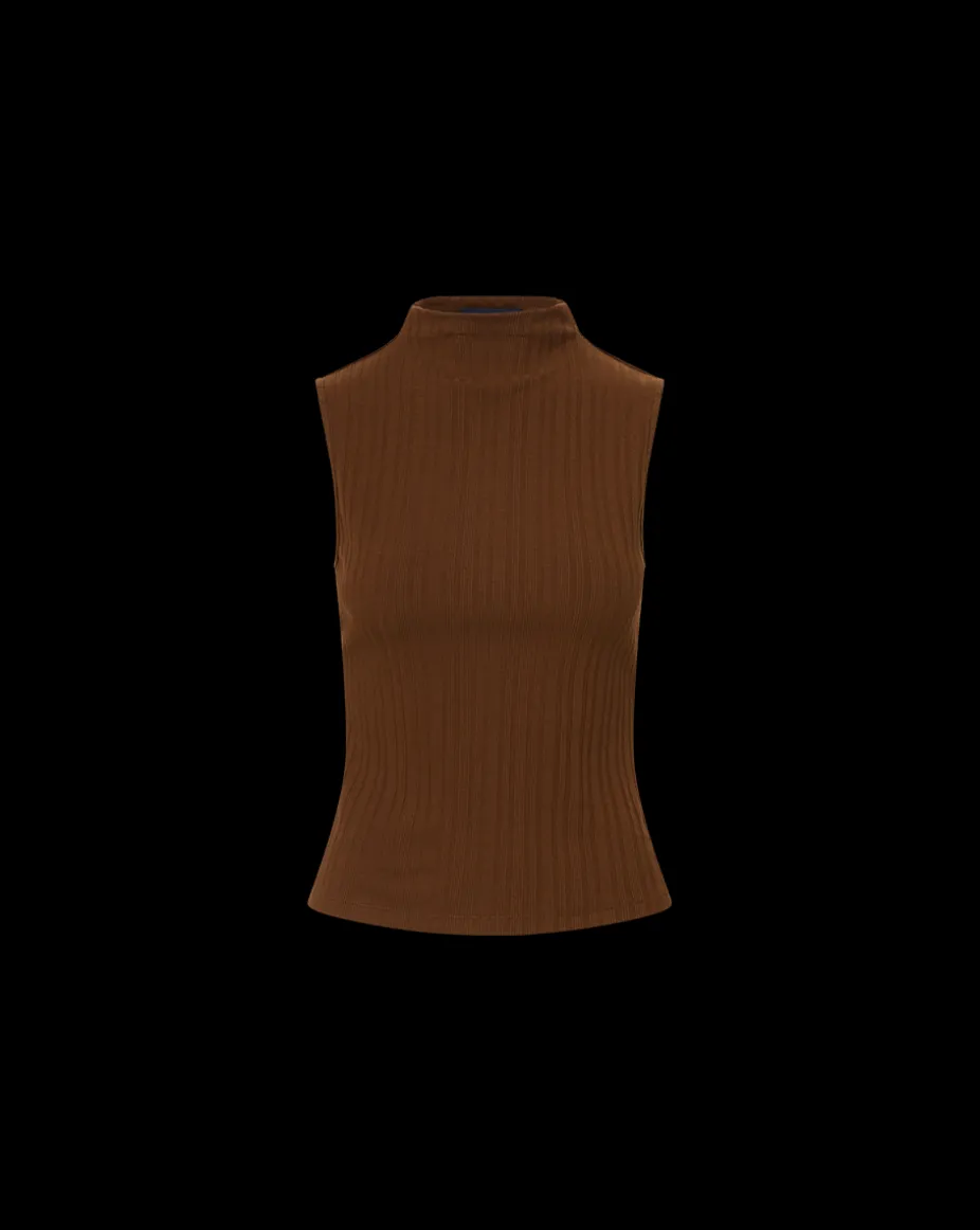 Made from premium stretch cotton, the Alora tank features a mock neck and ribbing for ease.