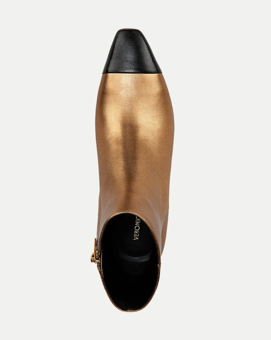 Be the first to review “Cecile Leather Cap-Toe Bootie in Gold/Black” Cancel reply