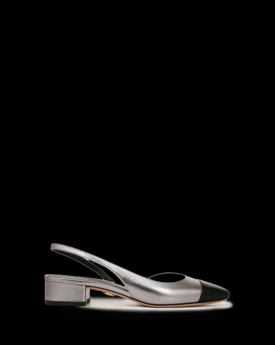 Cecile Leather Cap-Toe Slingback in Silver/Black