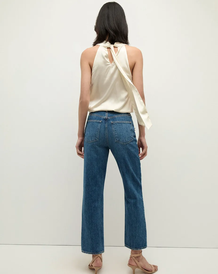 Made in LA from premium Italian denim, the high-rise, straight-leg jean features a snatched waist, a smooth, flat stomach and an ankle crop.