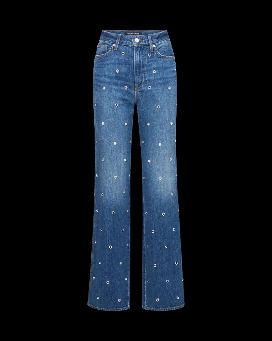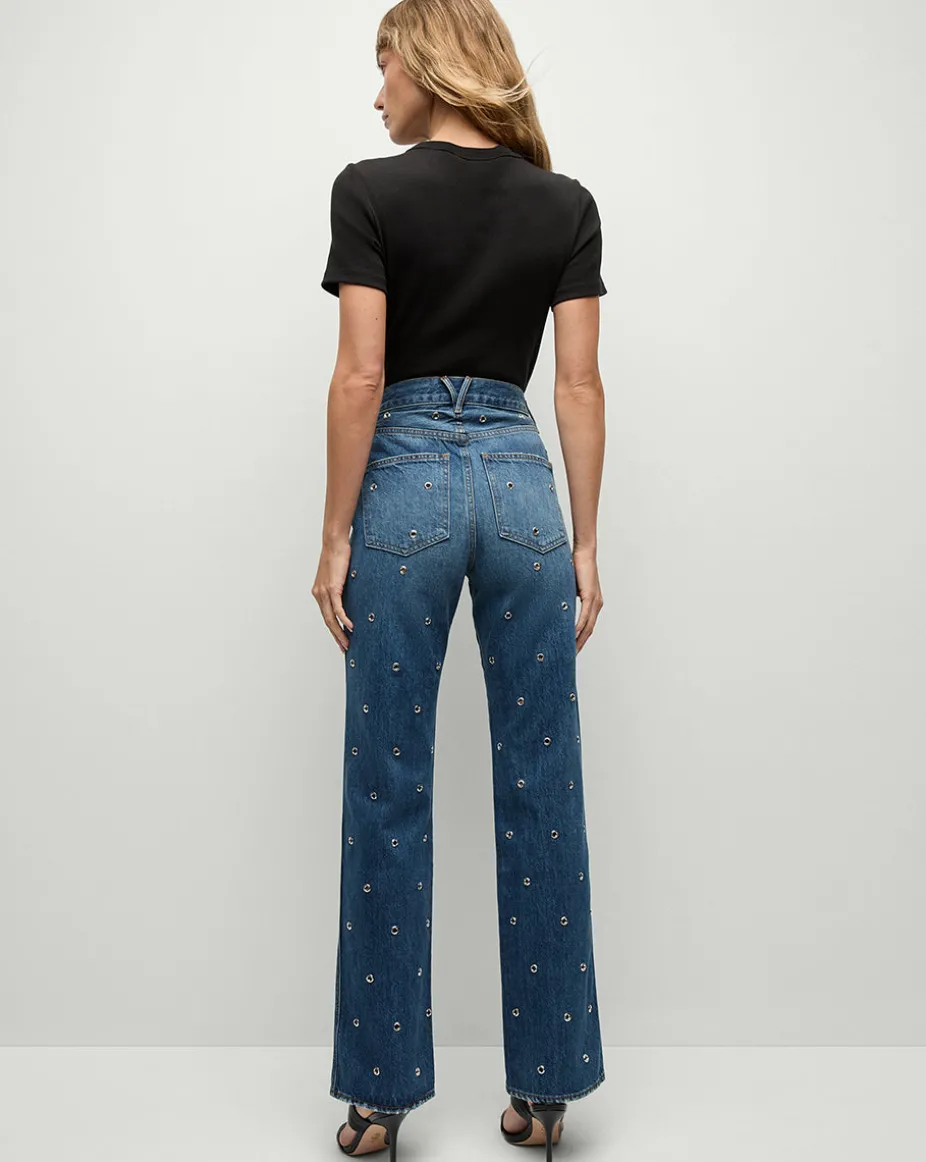 Dylan Grommet Straight-Leg Jeans in Blue Denim