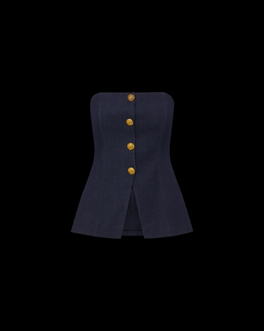 Forman Denim Bustier Top in Dark Wash