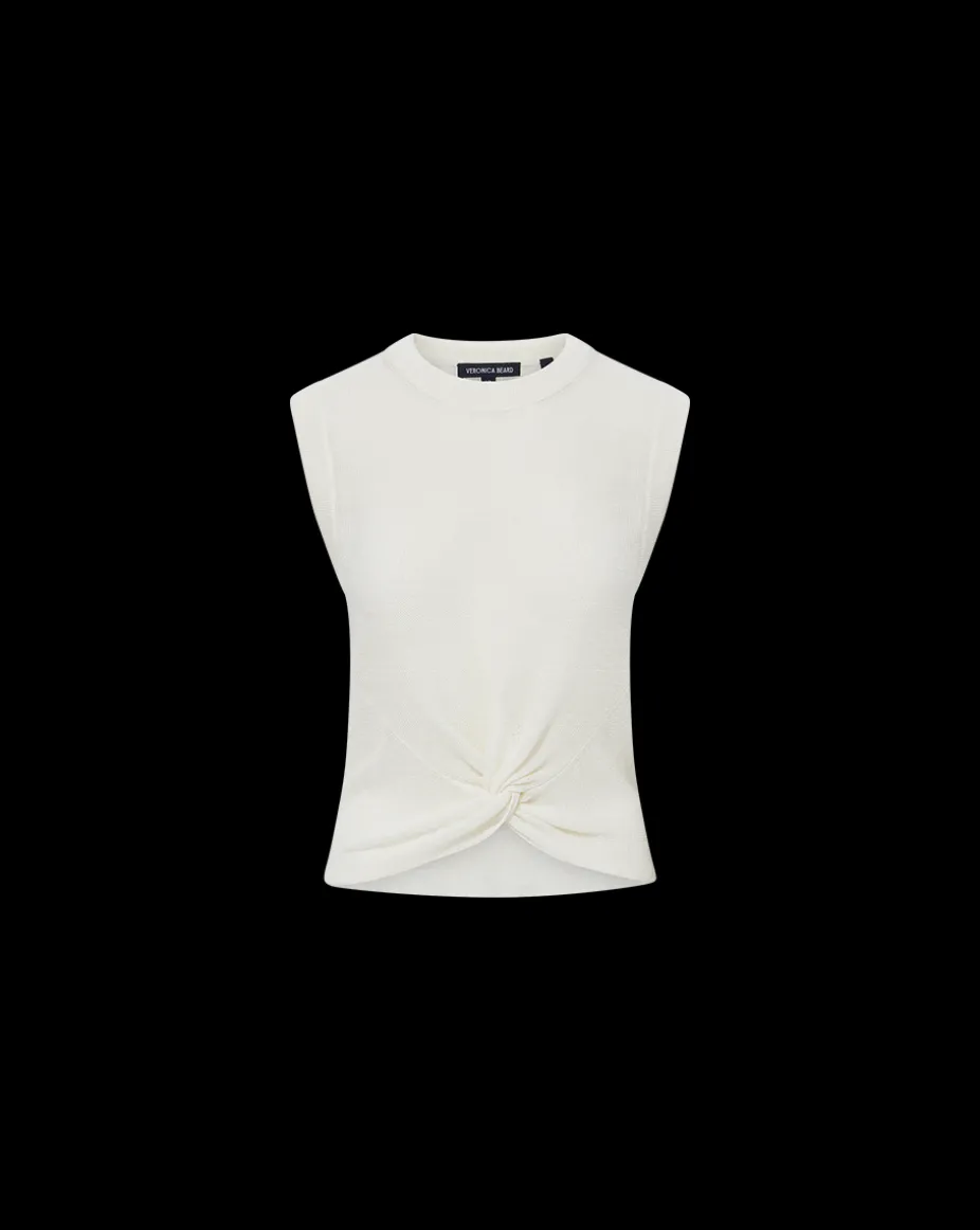 Crafted from a linen-blend, this twist-hem top features a classic crew neckline and sleeveless silhouette.