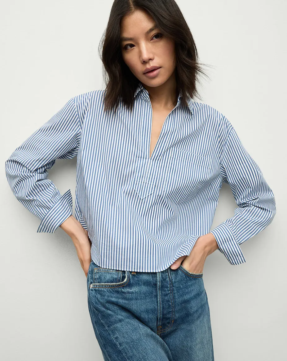 Khai Cropped Tunic Top in Blue/White Stripe