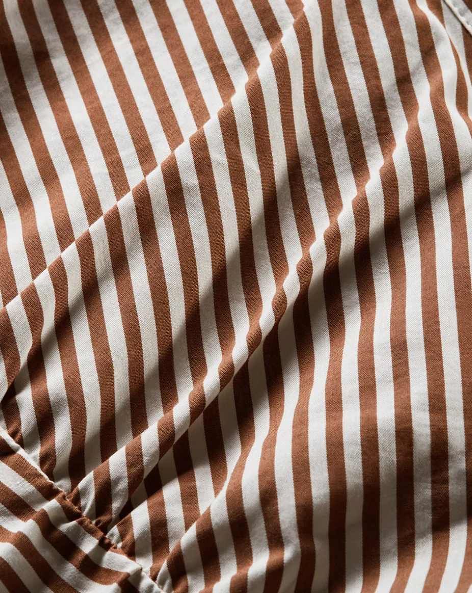Made from lightweight stretch cotton, the Lex features curved ruching along the sides to cinch the waist and a striped print that feels right for summer.