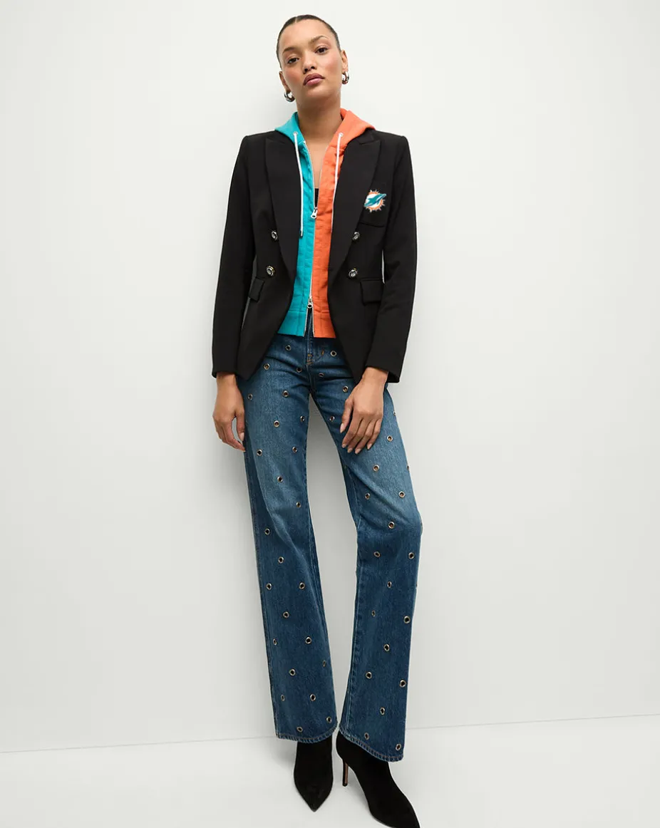 Done in collaboration with the NFL, this expertly tailored black jacket is crafted from wrinkle-resistant scuba with subtle stretch for comfort and ease of movement.