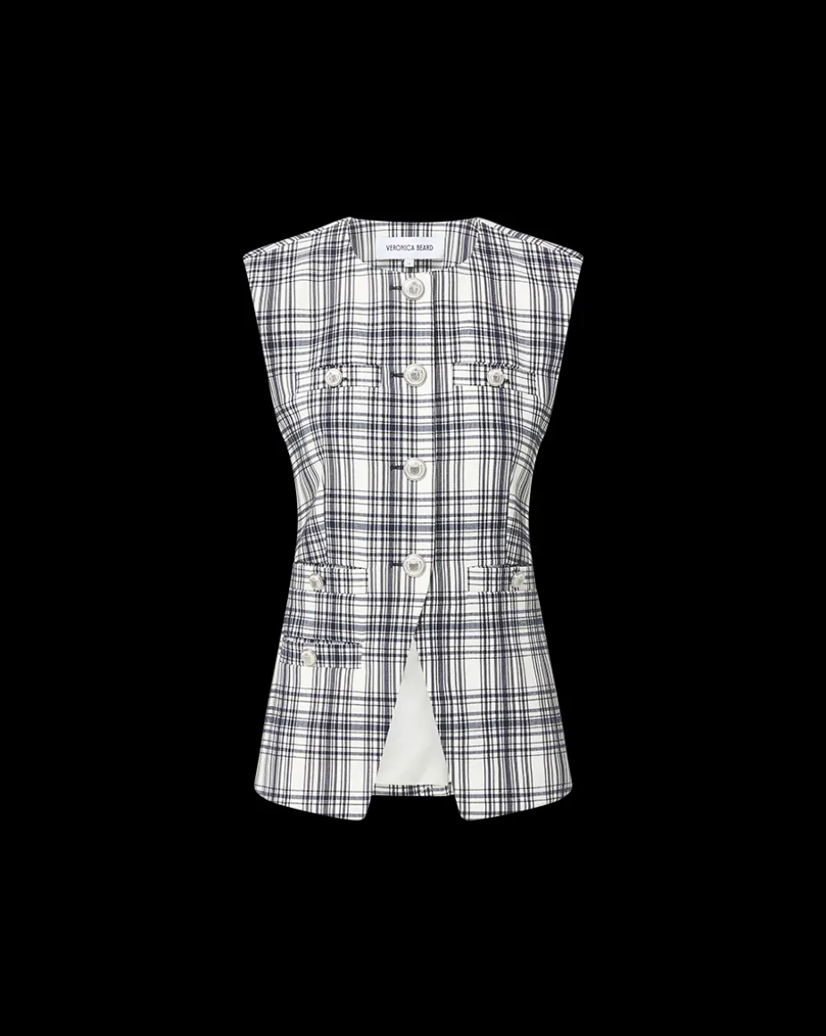 Tamara Plaid Vest in Ivory & Navy
