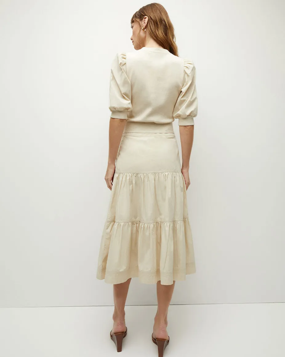 On trend with timeless appeal, the Armida skirt is made from an airy stretch-cotton and cut to a versatile midi length.