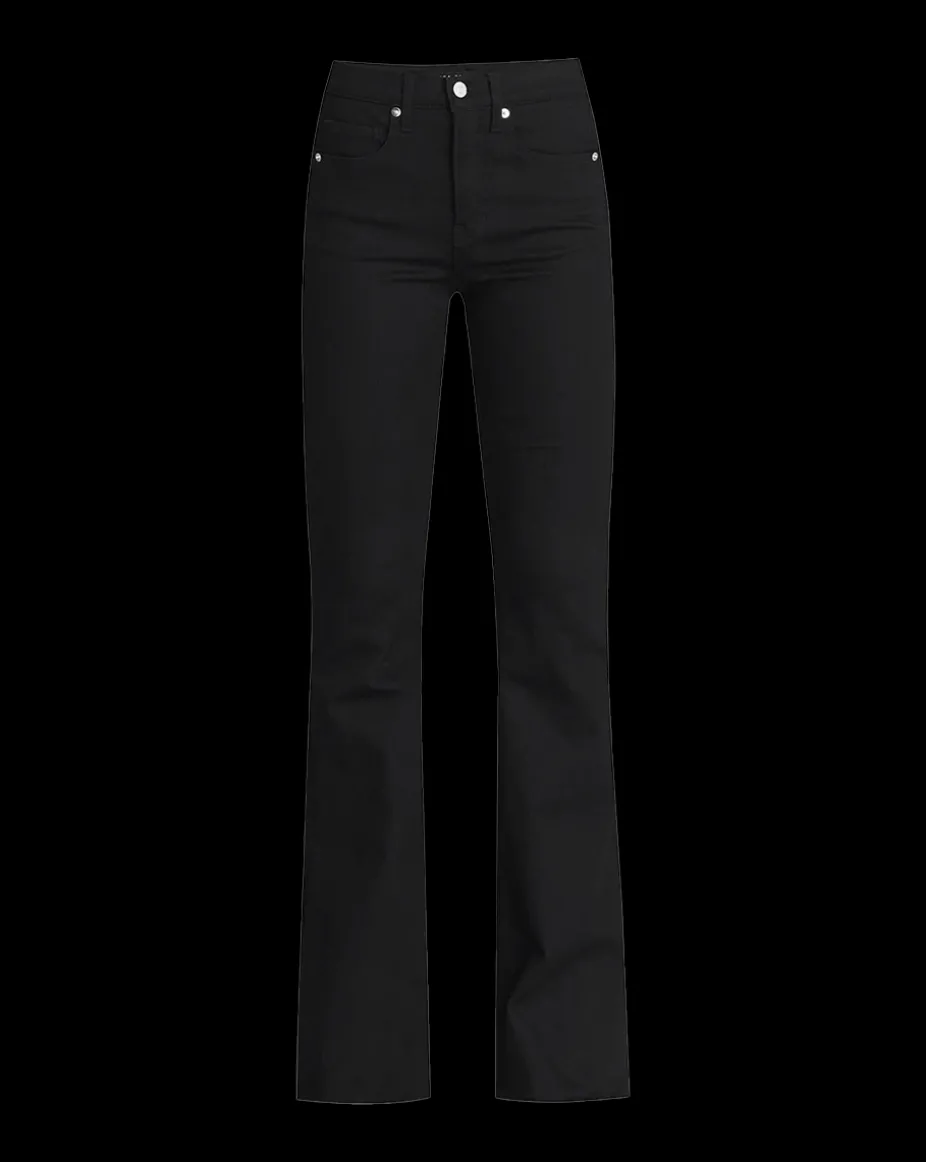 In a sophisticated dark wash, the Beverly jean features a high-rise waist that is fitted through the hips and thighs with a subtly flared leg.