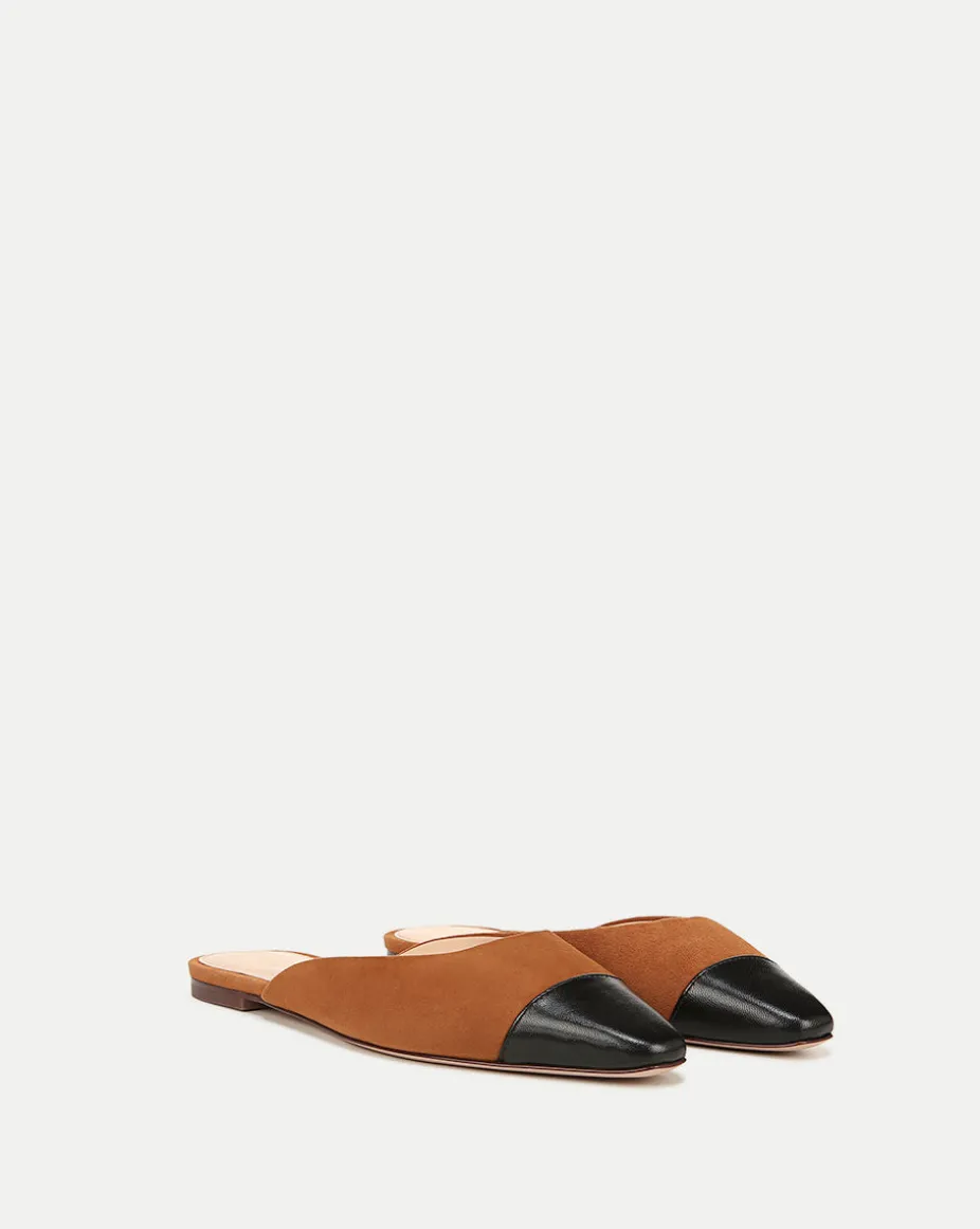 Carlotta Suede Flat in Black/Caramel