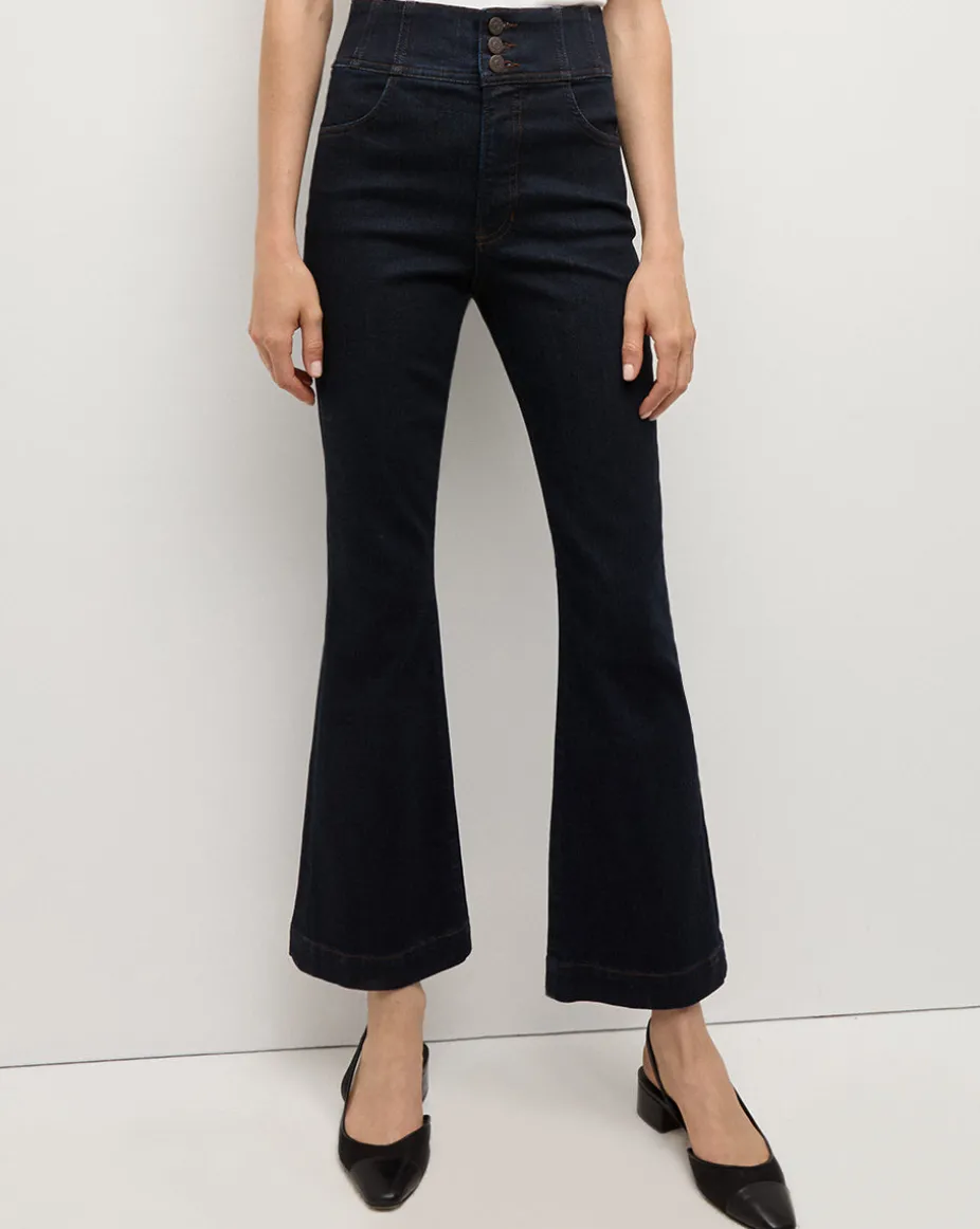 Made in LA from Japanese stretch denim, this high-rise flare features a slim fit and a slightly cropped length that suits flats and heels alike.