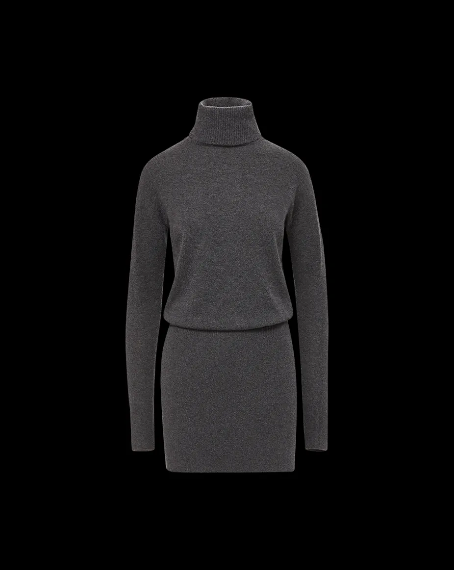 Cassidy Merino Cashmere Turtleneck Dress in Charcoal
