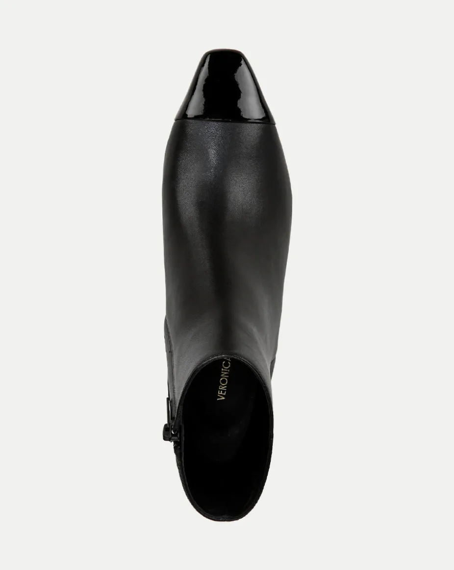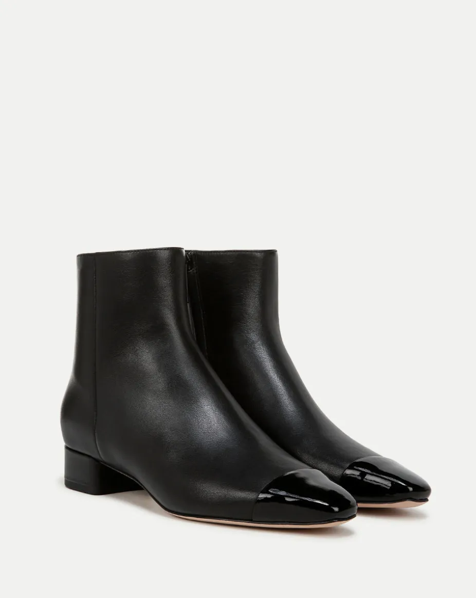 Cecile Leather Cap-Toe Bootie in Black/Black