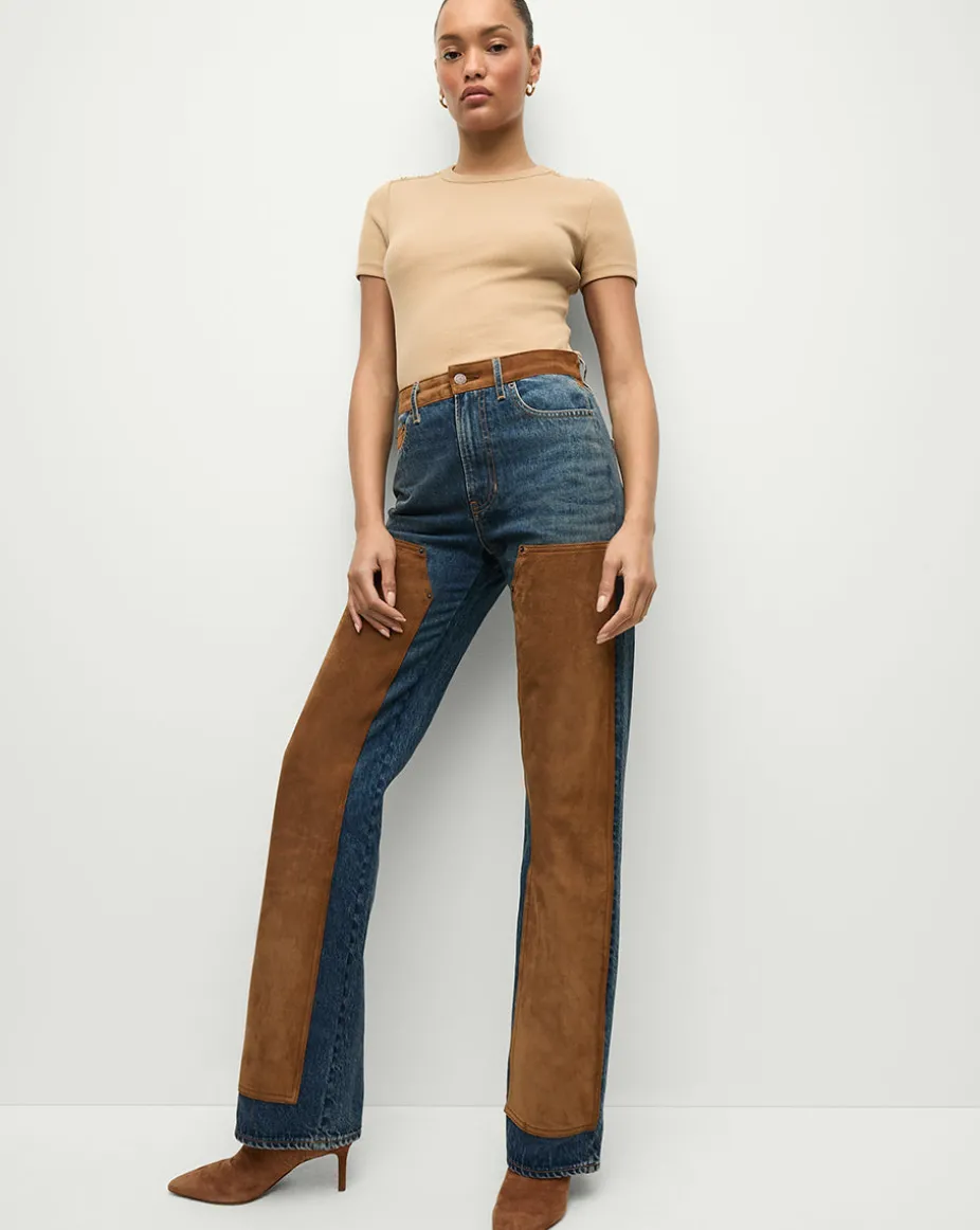 Dylan Suede-Patchwork Straight-Leg Jean in Equinox Blue