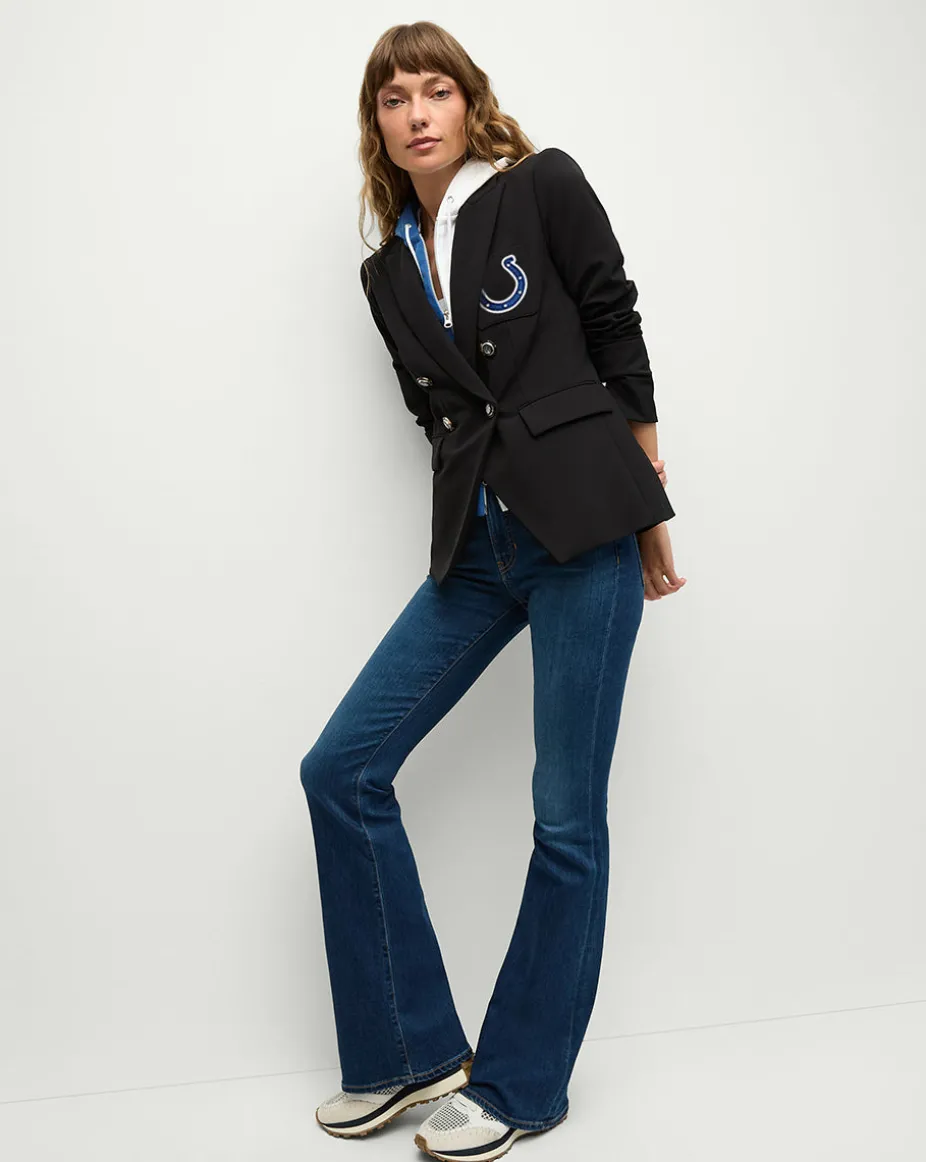 Done in collaboration with the NFL, this expertly tailored black jacket is crafted from wrinkle-resistant scuba with subtle stretch for comfort and ease of movement.