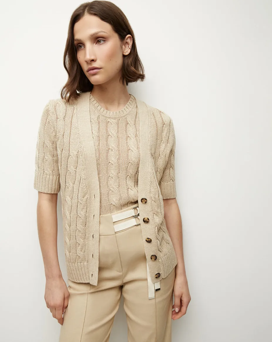 Designed to pair with our Jerrel tank, this silk-linen cardigan features the same summer-weight cable knit.