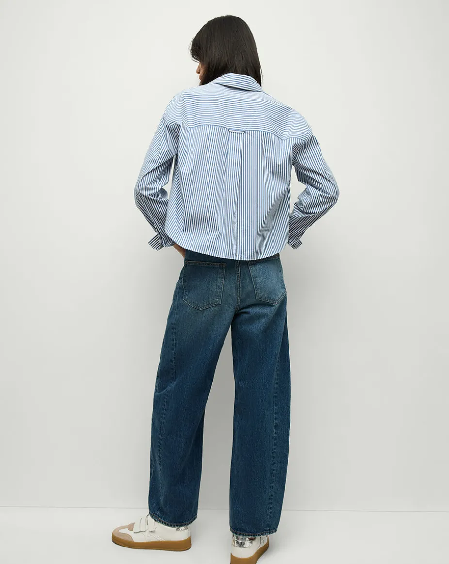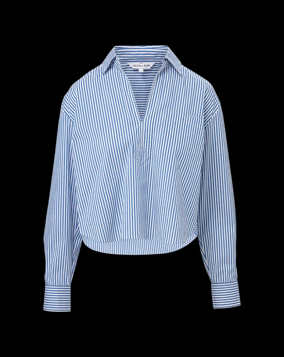 Khai Cropped Tunic Top in Blue/White Stripe