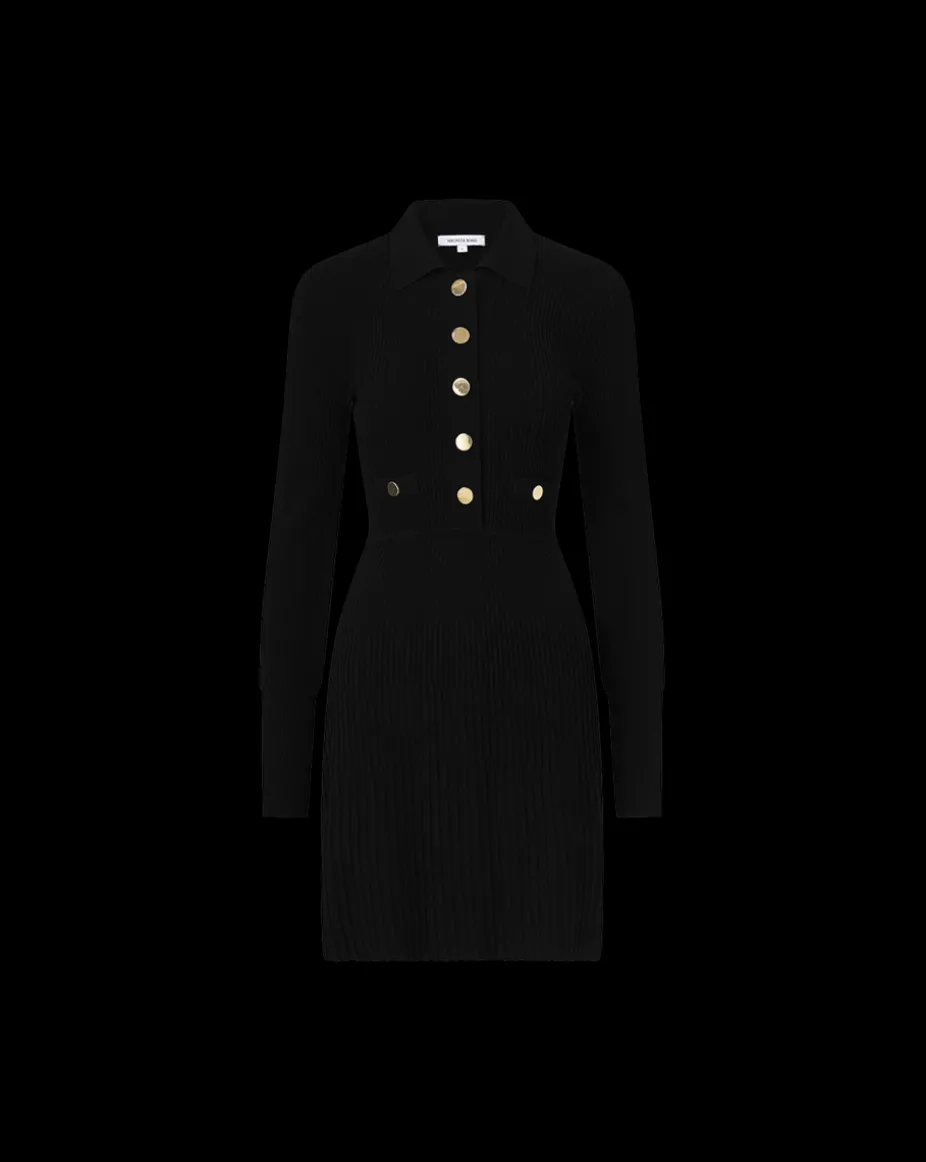 Spun from a sporty stretch knit, the Lauper mini features allover ribbing, a trim collar, and bishop sleeves with an extended cuff.