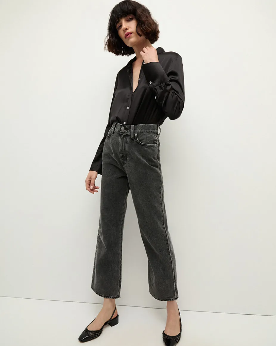 Monique Silk Button-Down Shirt in Black