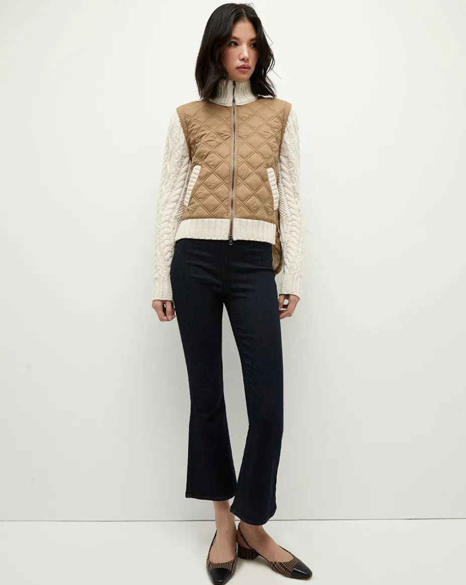 We combined a quilted water-resistant body with cable-knit sleeves and ribbed trimming—the ultimate in relaxed-meets-refined.