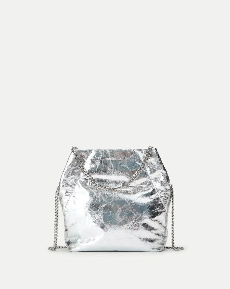 Small Metallic Slouch Shoulder Bag in Silver