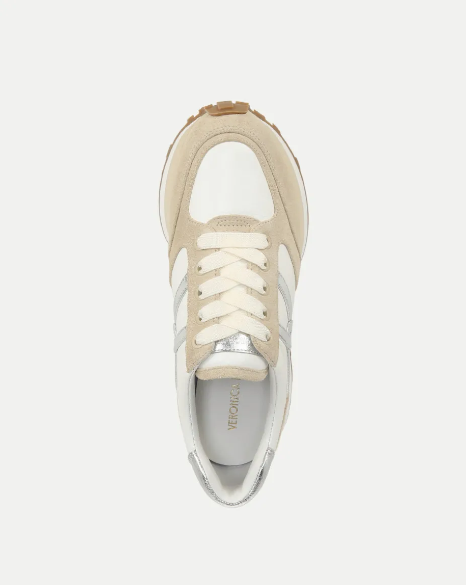The Valentina sneaker combines flattering lines and comfort: a padded collar, a cushioned midsole with a one-inch lift, a rubber outsole for grip and suede detailing around its toe cap.