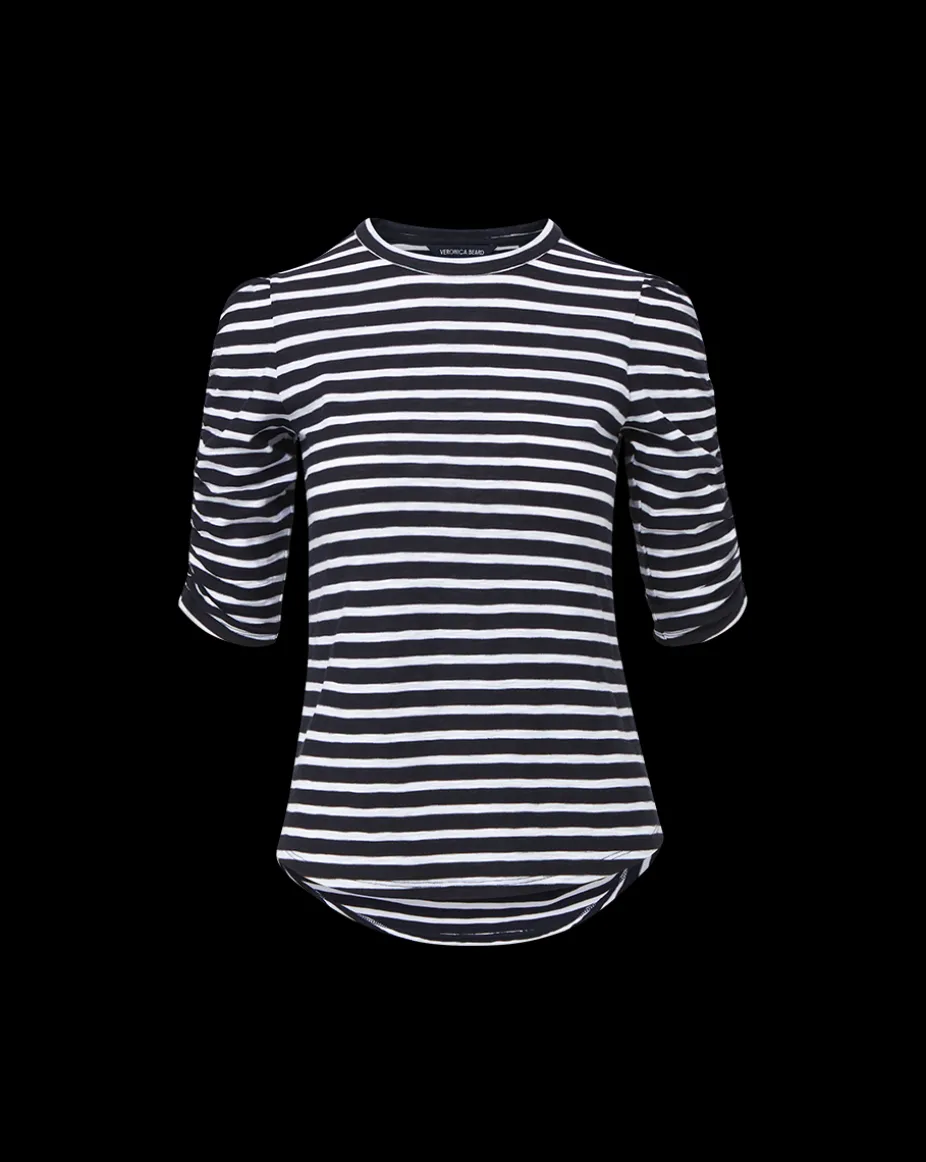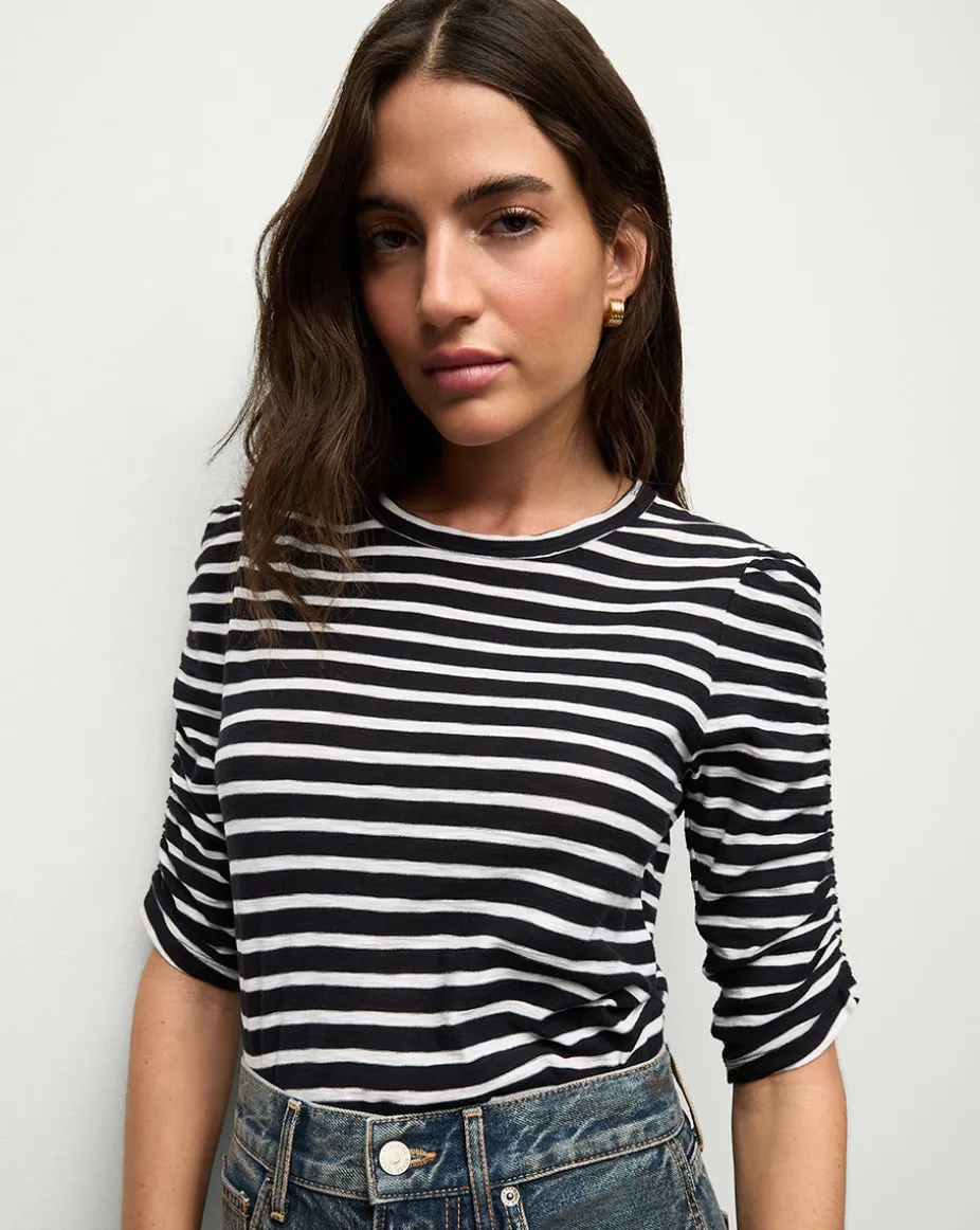 Waldorf Ruched-Sleeve Tee in Navy/White