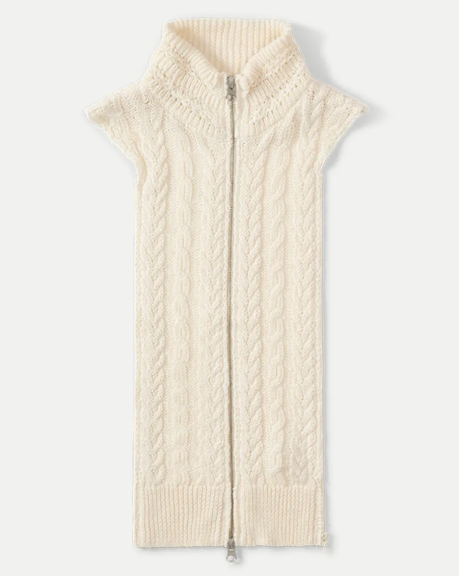 Spun from soft linen and silk blend, the Zander dickey features a high neckline and cozy cable-knit pattern.